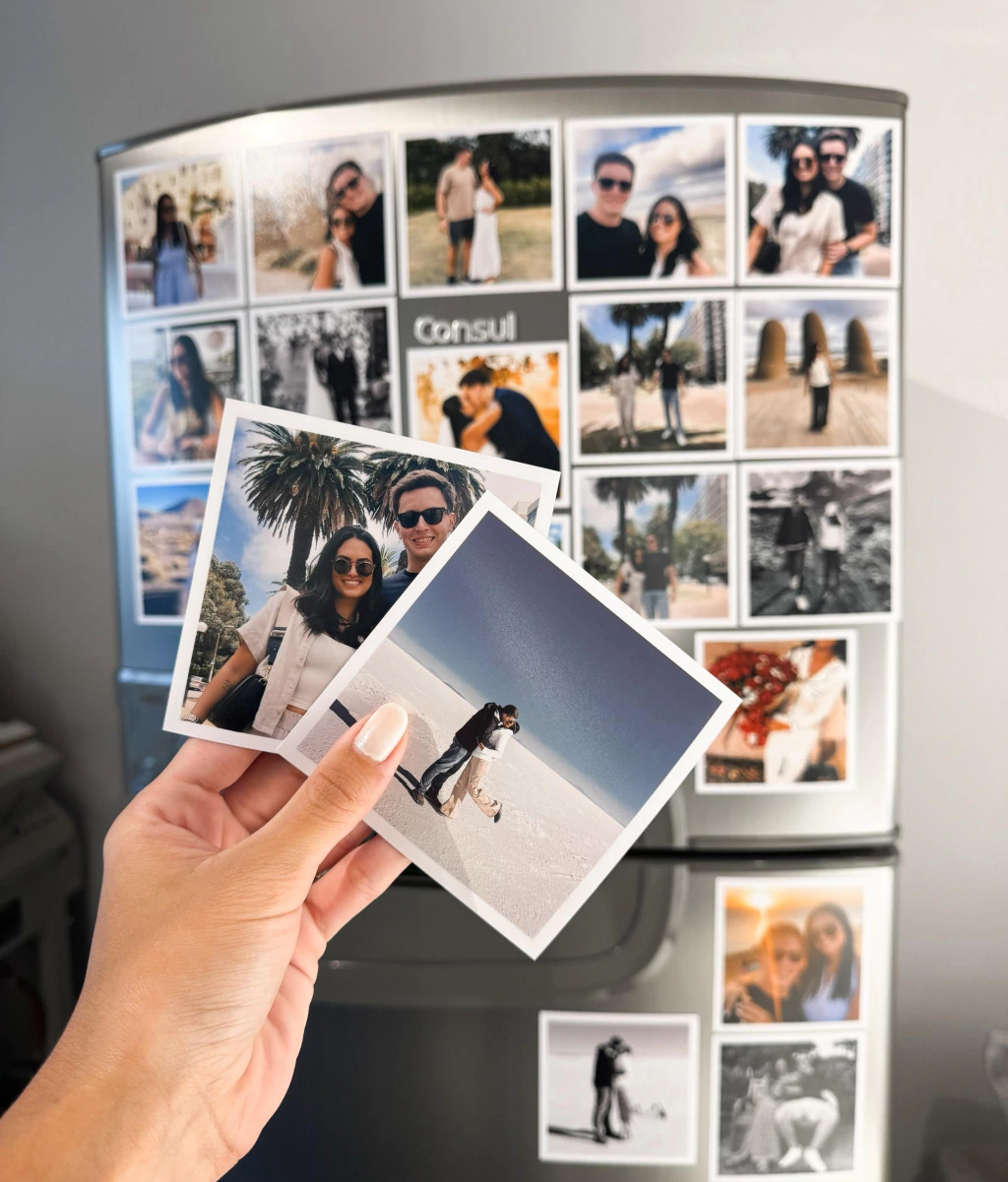 O imã é ideal para decorar sua geladeira com seus melhores momentos. (Manta magnética atrás da foto - para colocar na porta da geladeira)