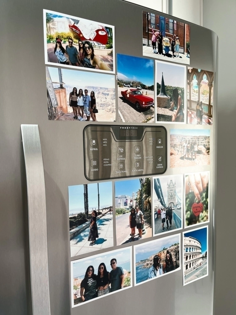 O imã é ideal para decorar sua geladeira com seus melhores momentos. (Manta magnética atrás da foto - para colocar na porta da geladeira)