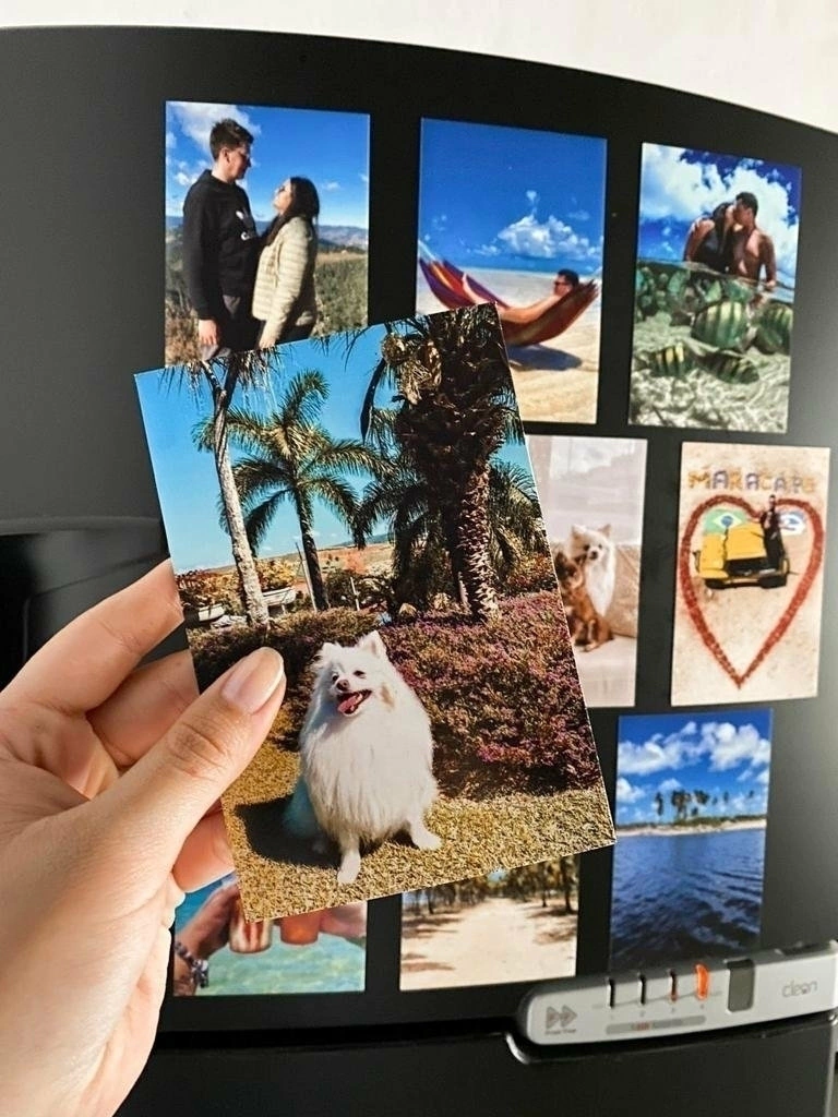 O imã é ideal para decorar sua geladeira com seus melhores momentos. (Manta magnética atrás da foto - para colocar na porta da geladeira)
