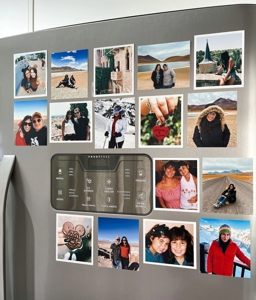 O imã é ideal para decorar sua geladeira com seus melhores momentos. (Manta magnética atrás da foto - para colocar na porta da geladeira)